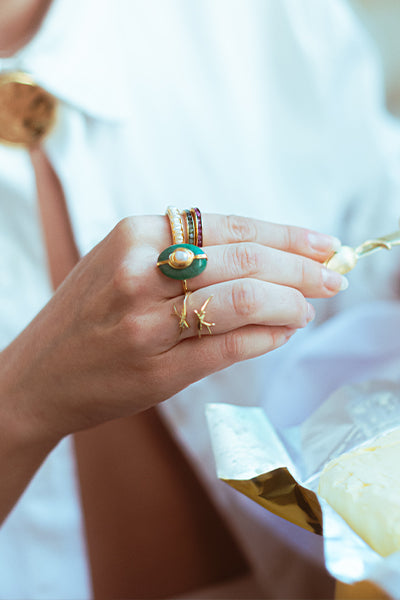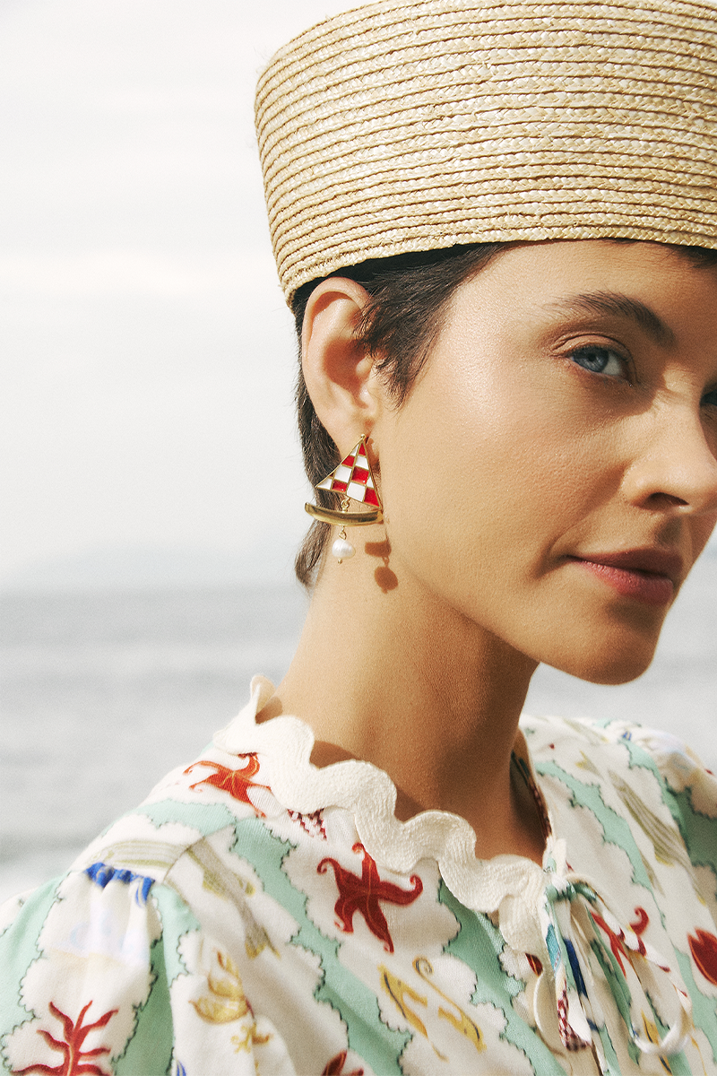 A Triana é uma marca de alma cigana; gostamos de ocupar os espaços de forma livre, por isso desenhamos todos os nossos móveis com movimento de ondas. O nosso balcão foi inspirado em um bar de hotel e o teto de tecido exalta a sensação de verão.
