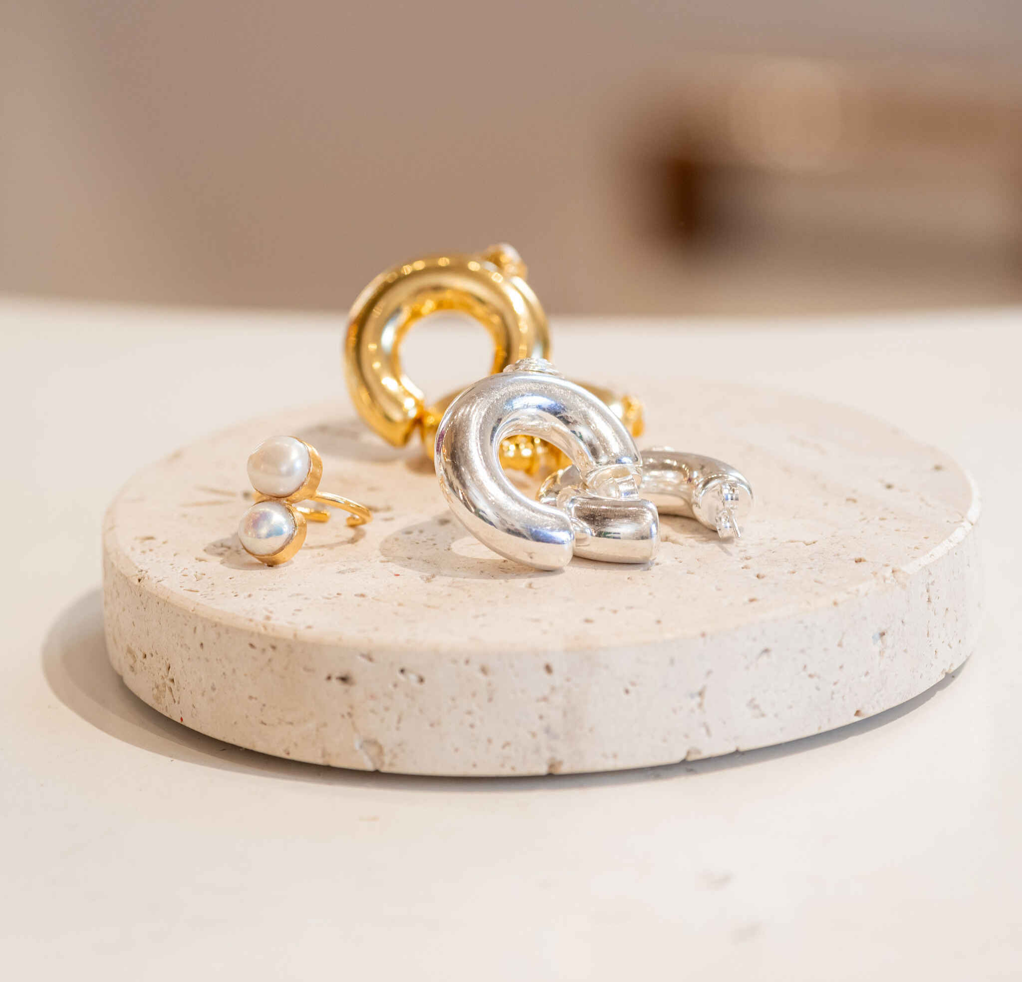 Nossas peças são folheadas de ouro/prata e finalizadas com verniz para aumentar a durabilidade. Além disso, utilizamos banho Níquel Free, principal causador de alergia.